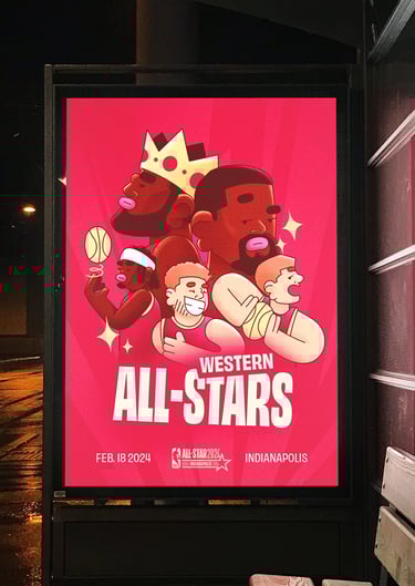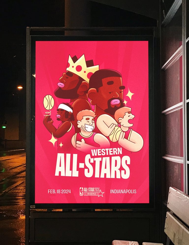 Une série de quelques posters de sport (surtout axé basketball). Ces illustrations m'ont permis d'explorer les portraits, le mouvement et le mélange personnages/lettrages. Une grande partie sont d'ailleurs des lettrages faits à la main.