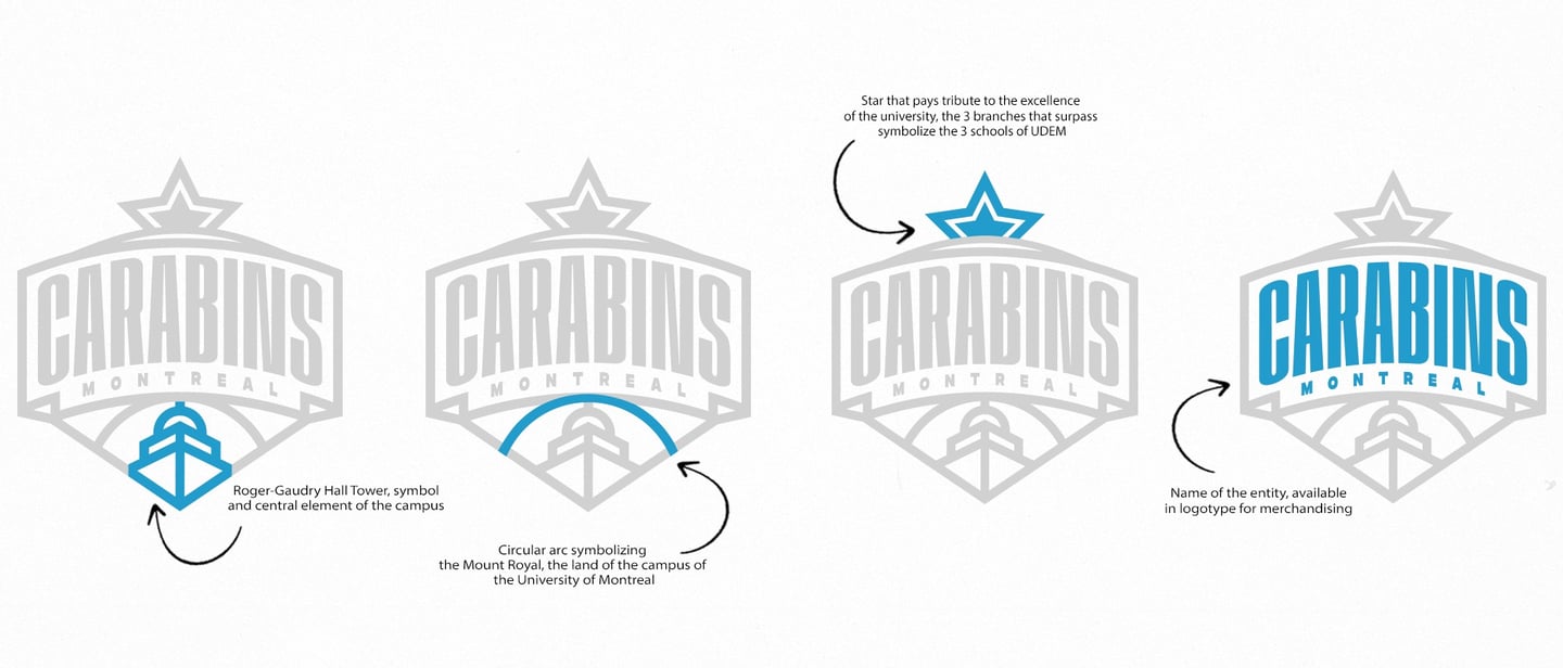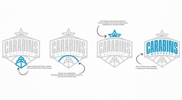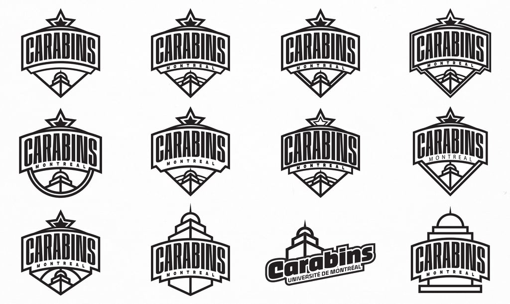 Les Carabins regroupent les équipes de sport de l'université de Montréal. Le logo n'a pas été changé depuis un bon moment et (je pense) mérite d'être mis à jour. C'est pour cela que j'ai choisi de moderniser cette identité et d'imaginer un logo plus facilement déclinable avec des symboles forts.