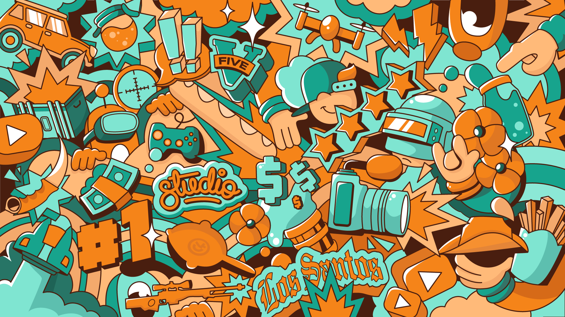 J’ai été contacté pour la refonte de la direction artistique de sa chaîne Youtube secondaire. J’ai réalisé une grande illustration, designé le personnage de Cyril et le logotype. L’idée étant de représenter son univers par plein d’objets en lien avec son contenu.
