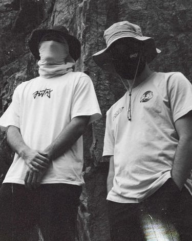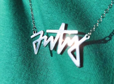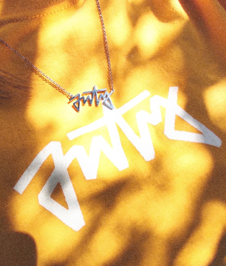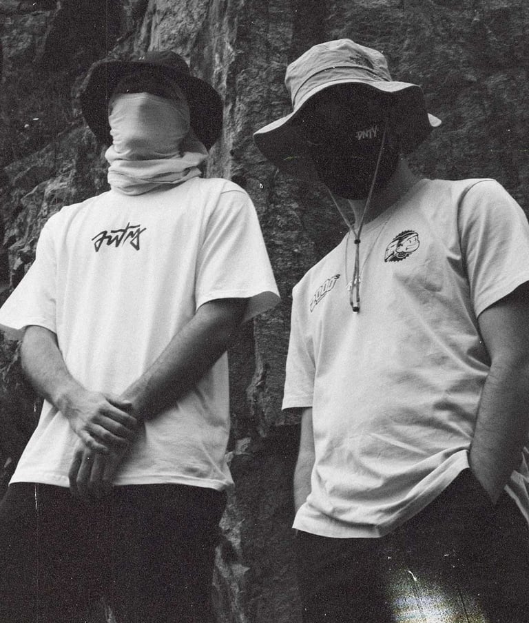 Un petit florilège de l'exploitation de mon logo. Initialement prévu pour une collection de vêtements pour ma marque DNTY, il s'est mué en logo personnel, qui me suit depuis quelques années. Il s'est donc retrouvé sur du textile, des cartes de visites, des stickers ou même en peinture.