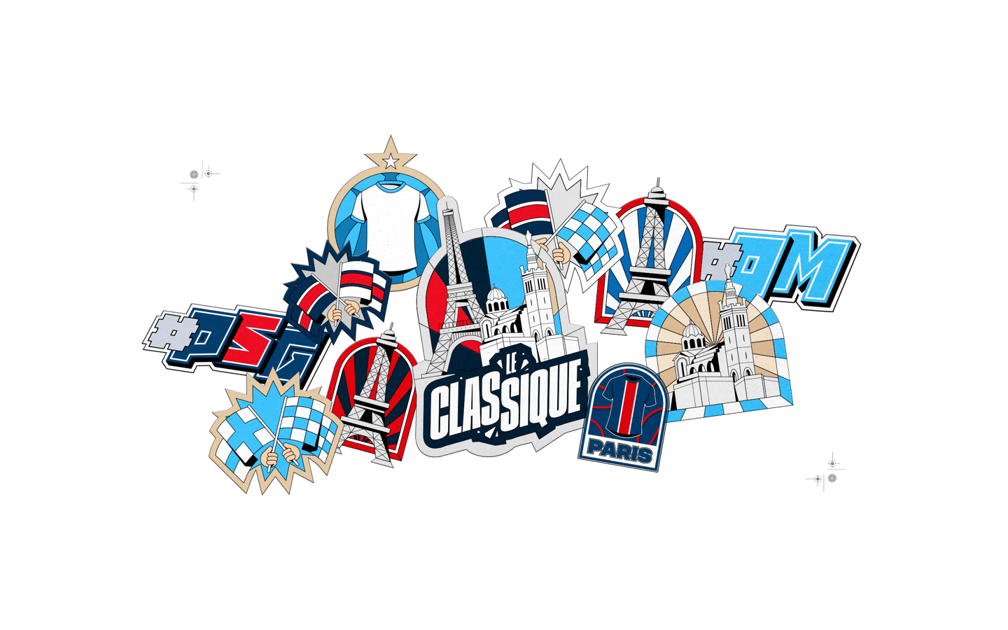 Ces illustrations ont enrichi le système graphique utilisé au Parc des Princes et sur les réseaux sociaux. L’idée était de s’inspirer des visuels des stickers ultras, omniprésents dans les villes et aux abords des stades.