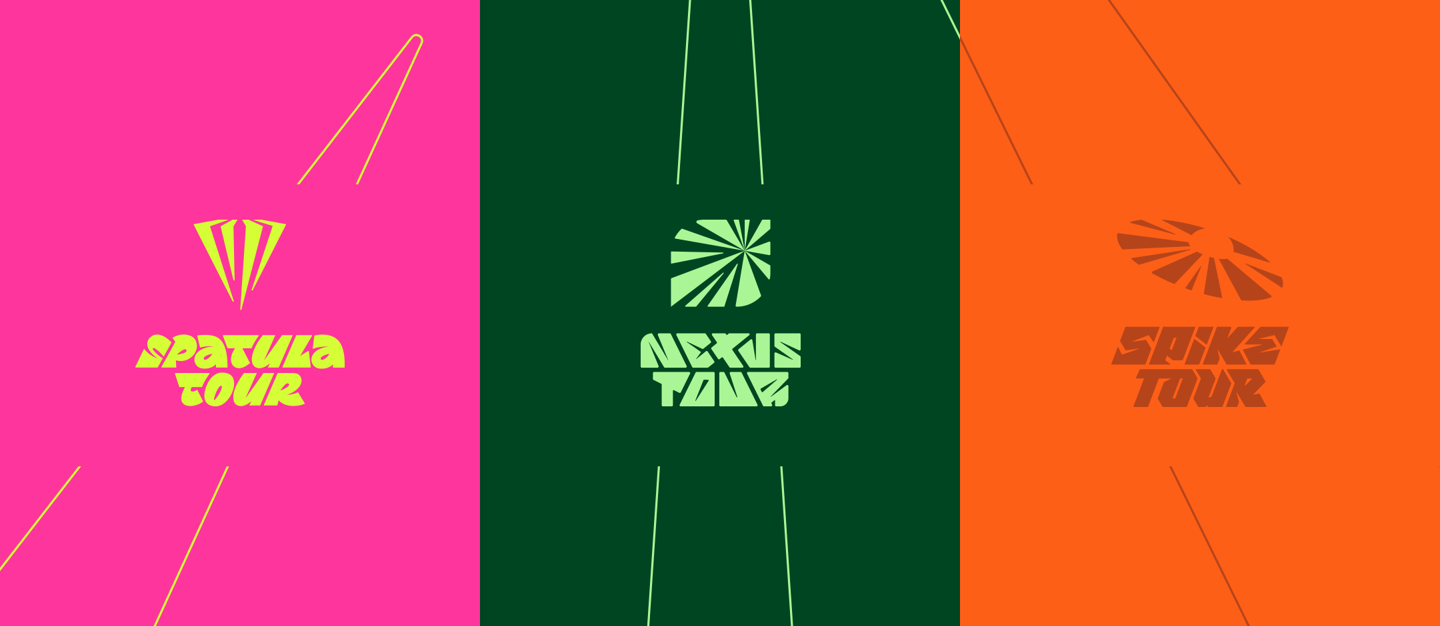 J’ai réalisé les logos pour les 3 jeux, le logotype du Tour et les illustrations du Nexus Tour et du Spatula Tour.
