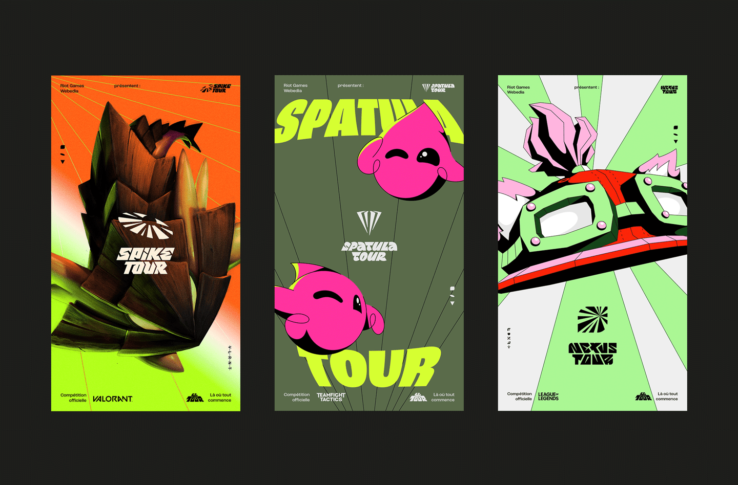 Dans la continuité du rebranding du Nexus Tour l’année dernière, j’ai été solicité par Mathieu Bourneuf pour mettre en place l’image du circuit amateur français de Riot Games : Le Tour,
