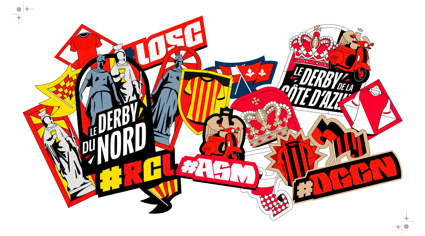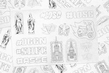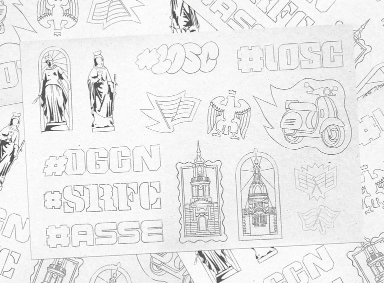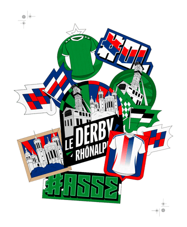 J'ai donc repris mes crayons pour illustrer les derniers derbys de la saison : le Derby de la Côte d'Azur, le Derby du Nord, le Derby Breton et enfin le Derby Rhône-Alpin. Je me suis chargé des logos et des stickers, toujours dans l'idée de retranscrire l'univers ultra à travers ces illustrations.