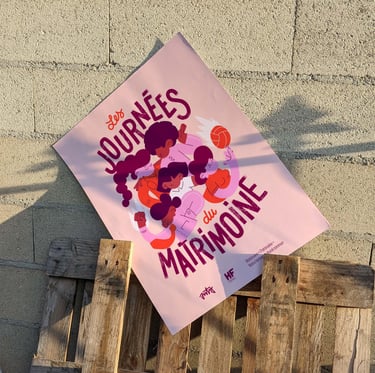 Début 2024, j'ai répondu à un appel d'offre pour la réalisation du visuel des Journées du Matrimoine de Montreuil. Ma proposition n'a pas été retenue, mais j'ai vraiment apprécié le processus de création, qui m'a permis de combiner mon amour pour le lettrage et l'illustration.
