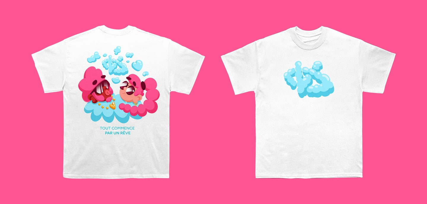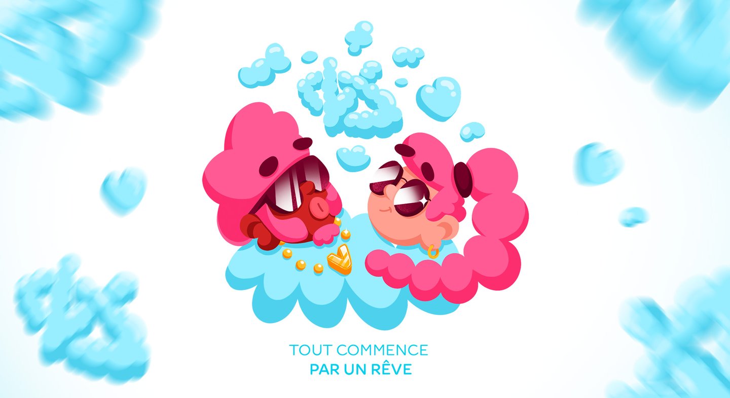 J’ai voulu retranscrire ma vision de la marque en créant ces deux personnages qui regardent, ensemble, vers un rêve, symbolisé par le logo visionnaire retravaillé.